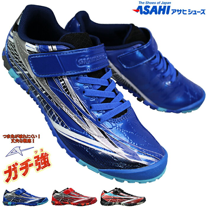 ■アサヒシューズ ガチ強 アサヒ J045 ブラック・ブルー・レッド 16cm〜25cm キッズ ジュニア 男の子 ローカットスニーカー ランニングシューズ 運動靴 子供靴 通学靴 通園靴 マジックテープ 面ファスナー 合皮 2E