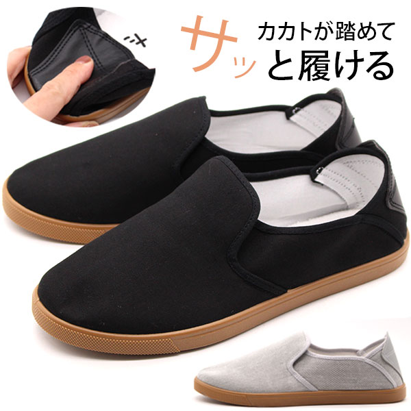 ■スニーカー メンズ 靴 スリッポン 黒 ブラック 灰色 グレー カカトが踏める 屈曲性 軽量 軽い おしゃれ 滑りにくい 快適 2way おしゃれ くつたろう DK-230