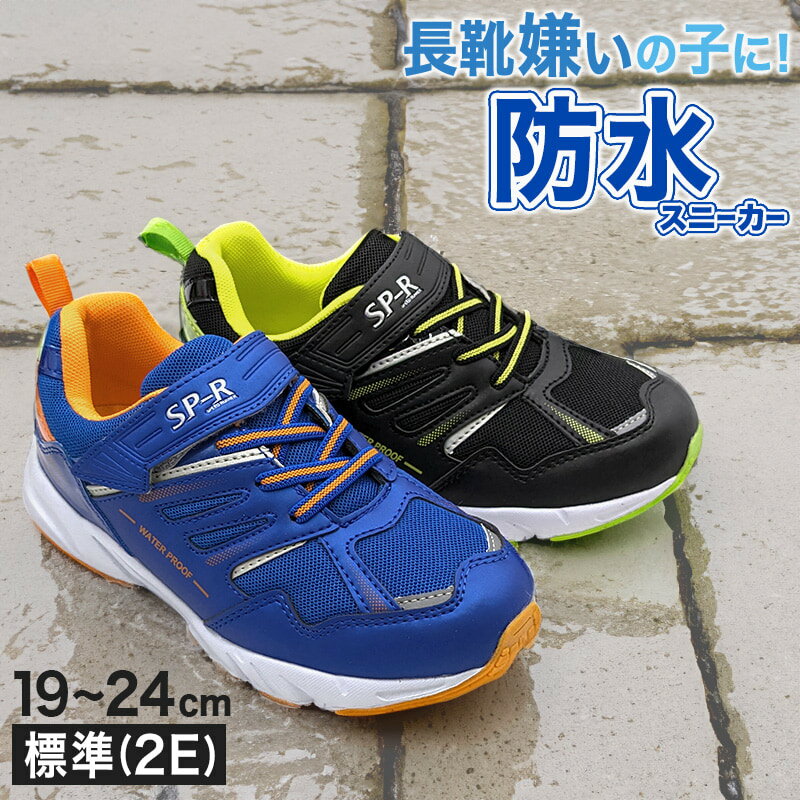 ■キッズ スニーカー 防水 男の子 子供 靴 シューズ ジュニア 男児 防水スニーカー マジックテープ 19cm〜24cm 学校 小学生 中学生 男子 青 黒 20cm 21cm 22cm 23cm (送料無料)【取寄せ】