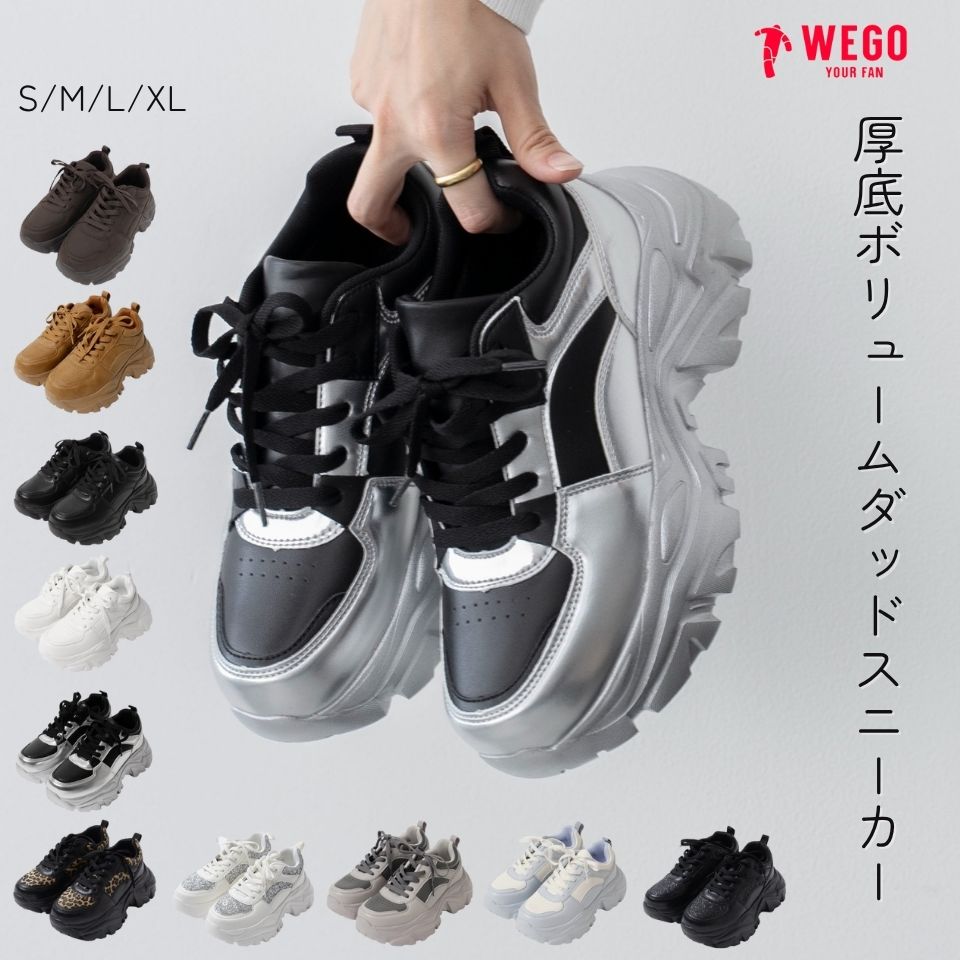 メーカー希望小売価格はメーカー商品タグに基づいて掲載していますWEGO厚底ボリュームダッドスニーカー 【存在感抜群でスタイリングの主役にもなるボリュームソールダッドスニーカー♪】■Detailトレンド感溢れるボリュームのあるフォルムが印象的な厚底ダッドスニーカー。シンプルながらも存在感のあるごつめソールでスタイリングのアクセントになること間違いなし!ボリューム感のある厚底は脚長&スタイルアップ効果...