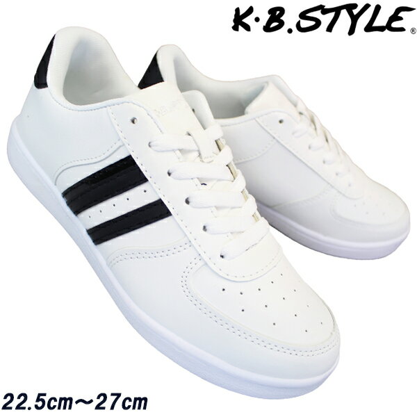 ■スニーカー メンズ レディース KB.STYLE ケービースタイル K-2149 白/黒 合成皮革 合皮 コートシューズ 紐靴 軽量 お買い得 軽い 靴 作業靴 お買い得 KBスタイル