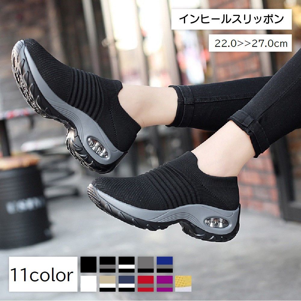 ■送料無料 インヒールスリッポン スニーカー 厚底 エアクッション スポーツシューズ 靴 レディース 女性 ジュニア スポーティー おしゃれ かわいい 足長効果 通気性 スタイルアップ 美脚 シークレットシューズ 婦人