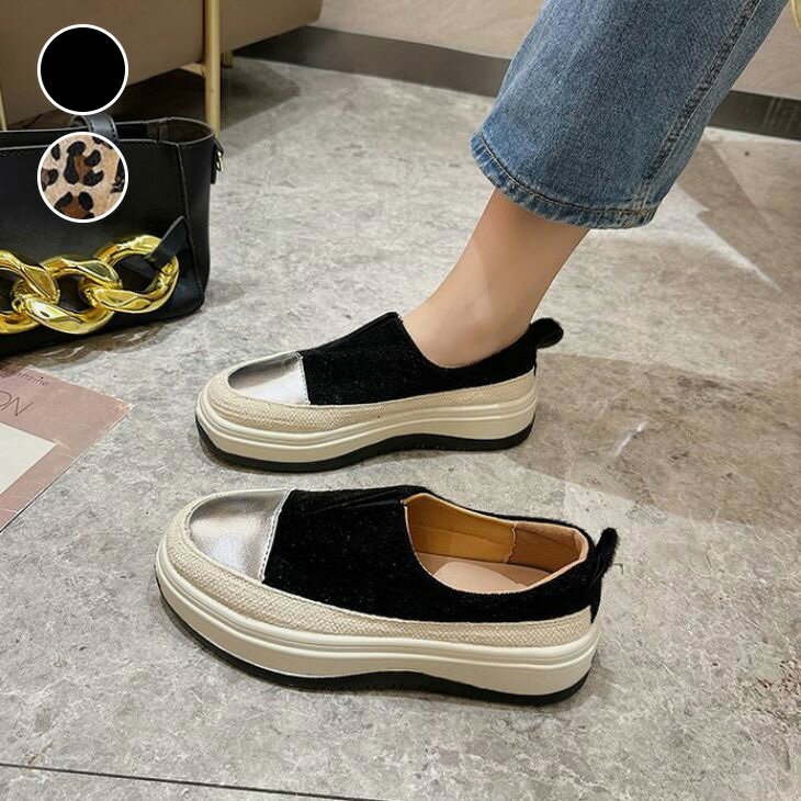 ■【25AW×半額クーポン】厚底 スニーカー デッキ スリッポン バイカラー 無地 レオパード ヒョウ柄 ベロア調 楽ちん カジュアル おすすめ レディース オシャレ トレンド 人気 プチプラ 韓国ファッション【ash4-232】【予約販売:15-20日】【送料無料】60込