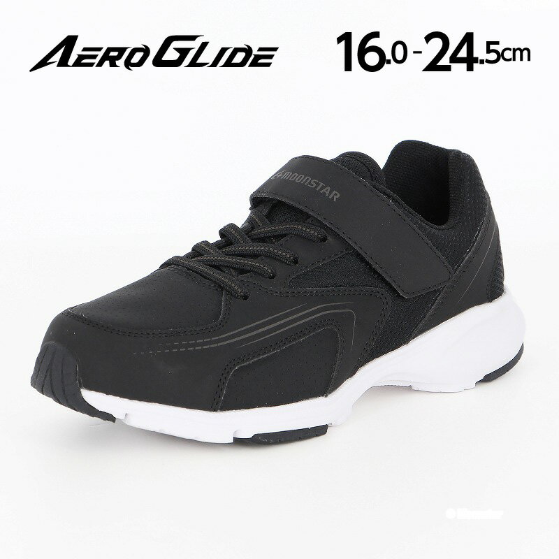 ■【11/20 20:00-11/27 1:59 10%OFFクーポン】ムーンスター エアログライド 子供靴 ジュニア スニーカー moonstar 抗菌防臭 運動会 通学履き 男の子 女の子 黒【2025年春新作】AG J004 ブラック