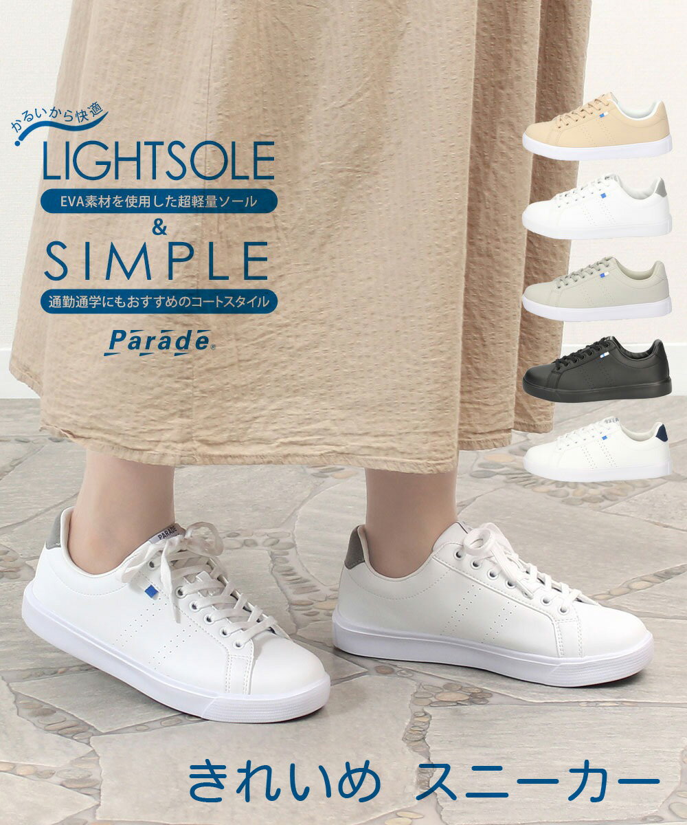 ■スニーカー レディース きれいめ 軽い 軽量 黒 白 おしゃれ ローカット レースアップ コートスニーカー 歩きやすい 疲れにくい かわいい シンプル 婦人 靴 981703 Parade
