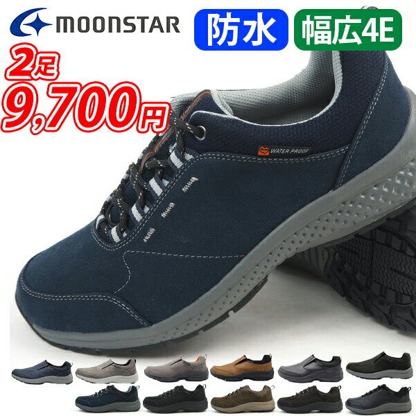 ■【1日限定★P最大7倍】 【選べる2足セット】 ウォーキングシューズ 防水 スニーカー メンズ ムーンスター 靴 幅広 4E 疲れない カジュアル サプリスト アウトドア 登山 シューズ 外反母趾 黒 茶 紺 ブラック ブラウン カーキ ネイビー MOONSTAR SPLT M196