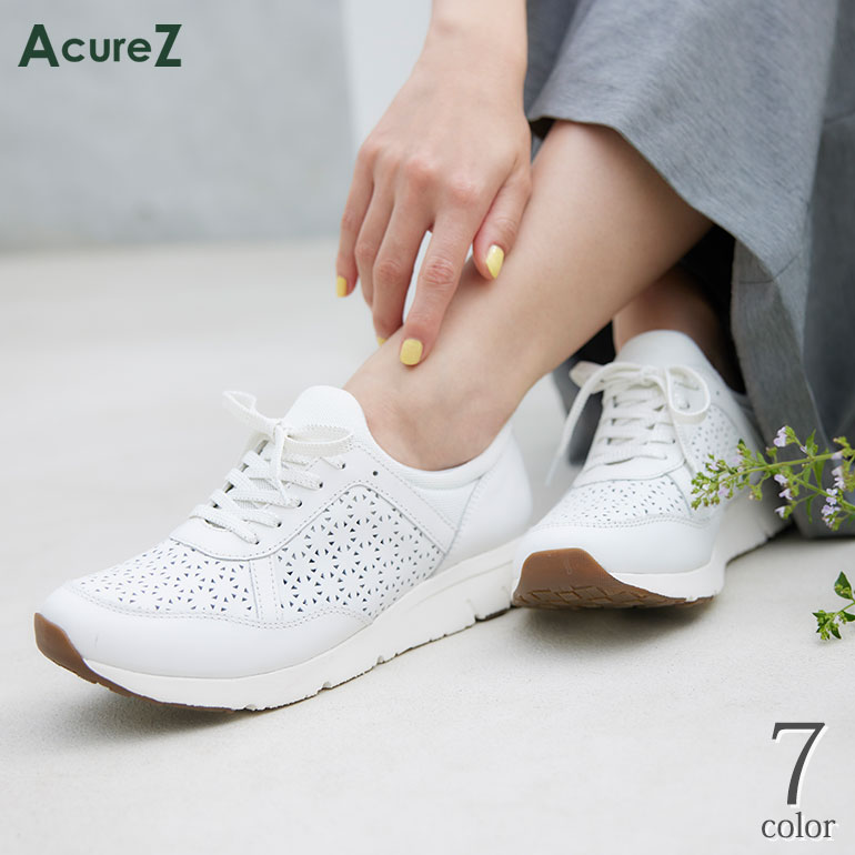 ■レディース スニーカー 外反母趾 痛くない 本革 レザー ブランド AcureZ アキュアーズ アシックス 疲れない 女性 靴 [ オフィス ウォーキング 通勤 消臭 ビジネス 痛くならない ストレッチ 婦人 おしゃれ かわいい シニア 学生 黒 白 大人 シューズ 紐 つま先 広い ]