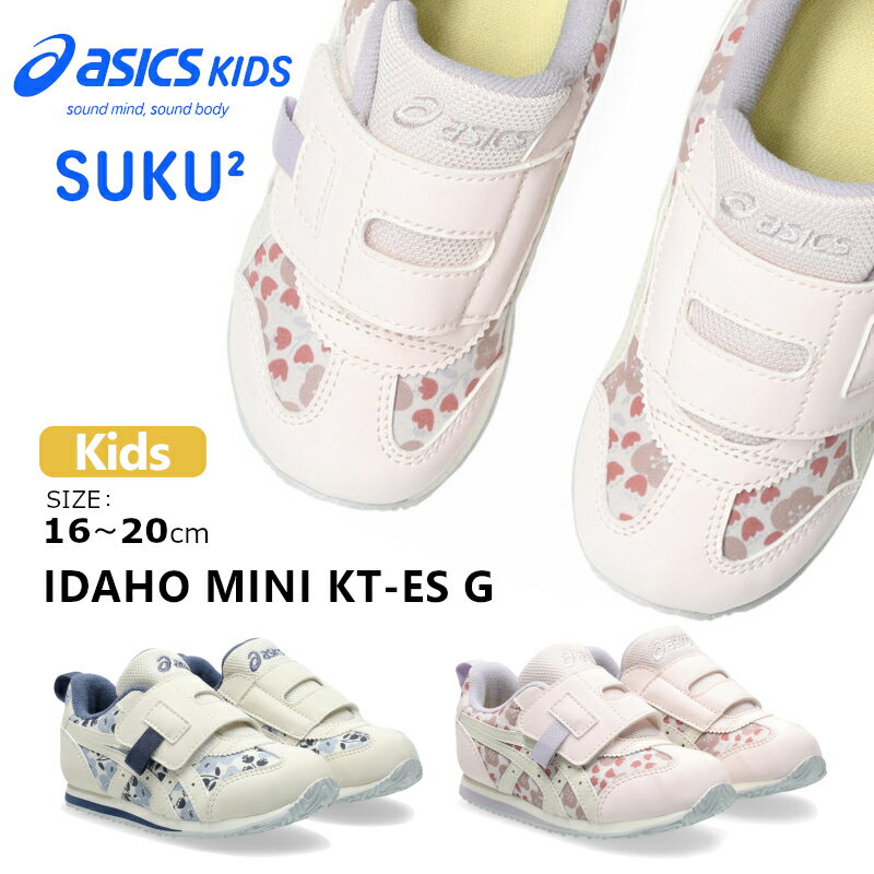 ■ASICS SUKU2 アシックス スクスク IDAHO MINI KT-ES G 1144A374 すくすく アイダホ ミニ キッズ スニーカー 子供靴 ピンク ホワイト マジックテープ 男の子 女の子 小学生 幼稚園 保育園 花柄 北欧 プレゼント 靴 白
