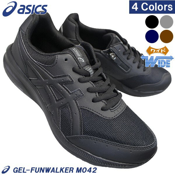■【エントリーでポイント5倍⇒11/27(木)1:59迄】 アシックス asics ウォーキングシューズ 1291A042 ゲルファンウォーカー M042 ブラック・グレー・ネイビー・ブラウン 24.5cm〜28cm メンズ スニーカー ウォーキングシューズ ファスナー付き靴 紐靴