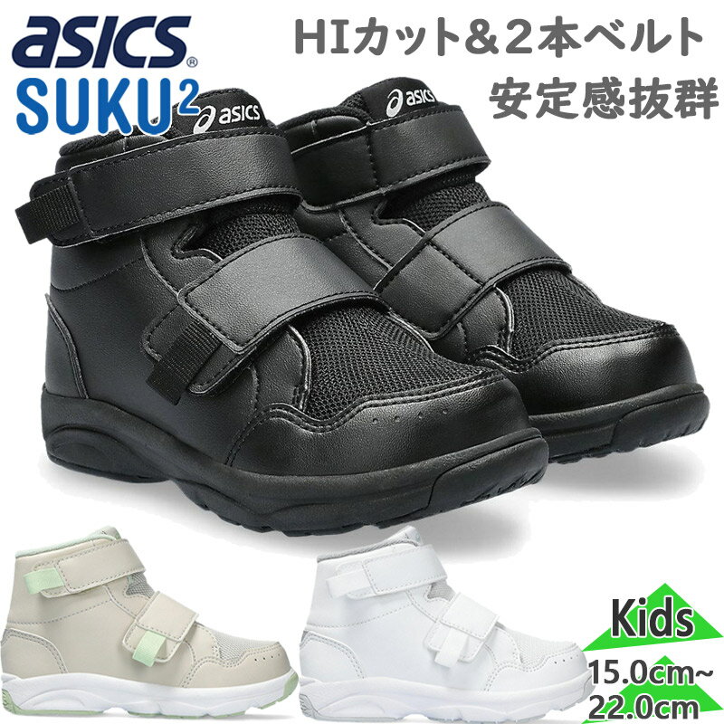 ■アシックス スクスク ジュニア キッズ GD.WALKER(R)MINI HI 2 男の子 女の子 ボーイズ ガールズ 靴 シューズ マジックテープ ハイカット 足底板 ホワイト 白 ブラック 黒 グレー 灰色 送料無料 ASICS SUKUSUKU 1144A313