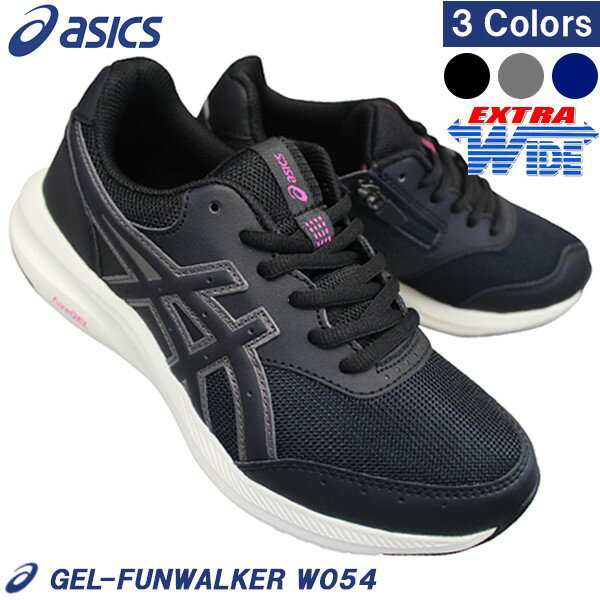 ■【エントリーでポイント5倍⇒11/27(木)1:59迄】 アシックス asics ウォーキングシューズ 1292A054 ゲルファンウォーカー W054 ブラック・ネイビー・グレー 22.5cm〜24.5cm レディース ウォーキングスニーカー 運動靴 紐靴 人工皮革 サイドファスナー サイドジップ
