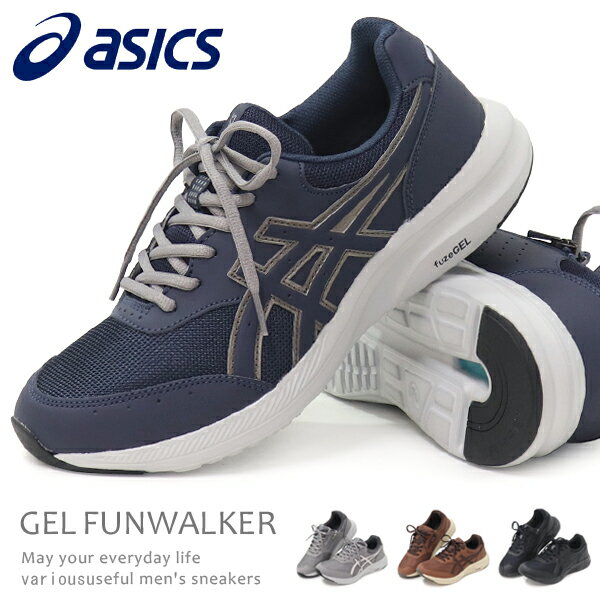 ■アシックス ウォーキングシューズ メンズ スニーカー ランニングシューズ メッシュ ひも靴 ファスナー 運動靴 asics WELLNESS WALKER GEL-FUNWALKER 1291A042