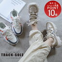 ■スニーカー レディース チャンキーソール 厚底 トラックソールスニーカー 6.5センチヒール ダッド レースアップ ベージュ ネイビー 22.5 24.0 ボリュームソール 歩きやすい 紐 美脚 カジュアル
