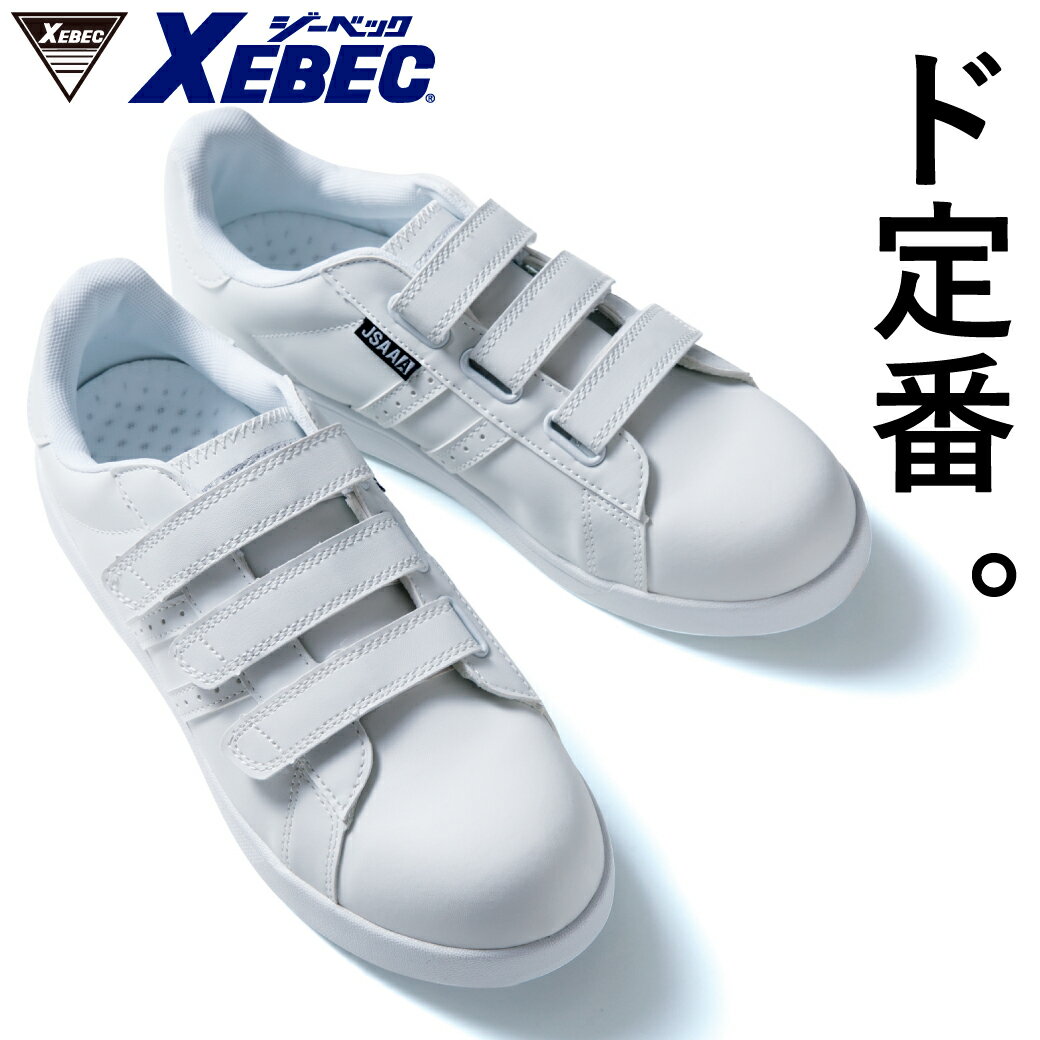 ■プロスニーカー 85411 22.0cm-30.0cmXEBEC マジックテープ 先芯あり ローカット シンプル 白 黒 抗菌 防臭 中底 衝撃吸収 耐油性 ゴム底 屋内作業 内装業 男女兼用