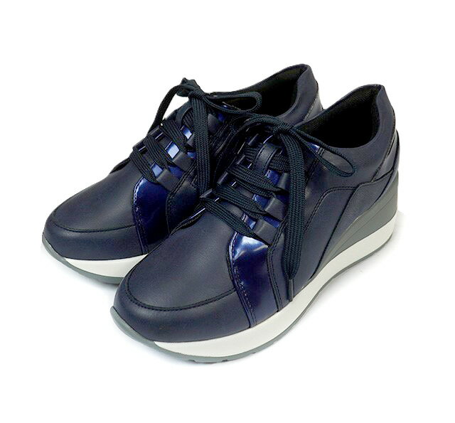 ■残りわずか!幅広ゆったり4E 切替デザインスタイルアップスニーカー レディースシューズ(22.0cm)ネイビー