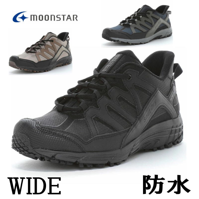 ■手を使わずに履ける メンズ 幅広 防水 軽い スニーカートレッキングシューズ アウトドア 登山靴 SDM09 ムーンスター サプリスト ローカット ウォーキング 男性 防水 防滑 靴 黒 白靴 ブラック グレー ホワイト 12324451 12324456 25cm 25.5cm 26cm 26.5cm 27cm 28cm