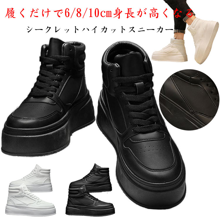 ■シークレットシューズ 厚底スニーカー メンズ 疲れない 6cmアップ 8cm 10cm ハイカット スニーカー ホワイト ブラック シークレットスニーカー 身長アップ インヒール スニーカー 厚底靴 メンズシューズ 底上げ 身長up 上げ底 レザー 24.5-27.0cm 通勤 通学 ギフト 送料無料