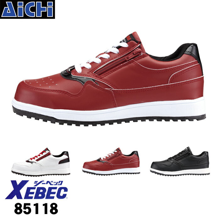 ■XEBEC ジーベック 安全靴 85118 セフティシューズ 22.0〜30.0cm | 安全スニーカー 軽量 作業用靴 作業靴 安全靴 ワークシューズ 樹脂先芯 耐滑 衝撃吸収 レッド ホワイト ブラック