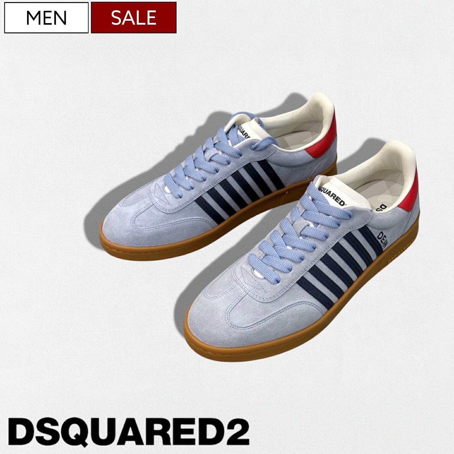 ■【定価95,700円(税込)】DSQUARED2 ディースクエアード 大人の上品な爽やかさ醸すジャーマントレーナーレザーコンビスニーカー ローカットシューズ レースアップ 靴 ブランドロゴ メイプルリーフ 牛革 ライトブルー BOXER S82SNM0364SJ14170001 イタリア製 メンズ
