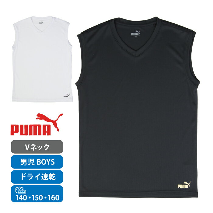 ■PUMA プーマ 男児 スリーブレス Tシャツ 吸水速乾 ドライ ポリエステル100% 無地 ワンポイント 着替え 部活 クラブ スポーツ 肌着 黒 白 ブラック ホワイト 小学生 キッズ ジュニア バスケ サッカー 野球 キッズインナー