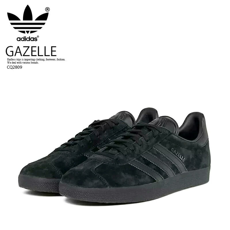 ■adidas (アディダス) GAZELLE (ガゼル/ガッツレー) ユニセックス メンズ レディース ローカット スニーカー シューズ クラシック レトロ ヌバック タウンユース カジュアル CBLACK/CBLACK/CBLACK (オールブラック) CQ2809 n-pd