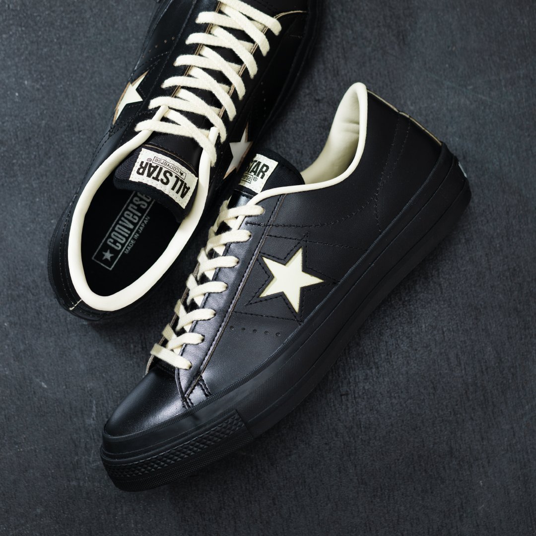 CONVERSE(コンバース)【CONVERSE 公式】ONE STAR J / 【コンバース 公式】ワンスター J国産ワンスターのカラーアレンジモデル。上質なスムースレザーをアッパー全面に使用した高付加価値モデル。ブラックのアッパーとソールに、生成りのポイントカラーを差したヴィンテージライクなアイテム。ヒールラベルの下部に印字した「MADE IN JAPAN」の文字もポイント。カラーはブラックの...