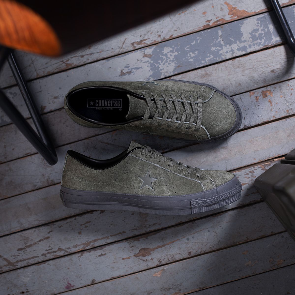 [型番:35200800]国産ワンスターの素材、カラーアレンジモデル。上質な国産スエードをアッパー全面に使用した高付加価値モデル。アッパー、シューレース、星、ソールのカラーをグレイでまとめた、ヴィンテージテイストな一足。ヒールラベルの下部に印字した「MADE IN JAPAN」の文字、ブラックのインソールにグレイの文字で印したコンバースロゴもポイント。カラーは秋冬シーズンに最適なグレイの1カラー展...
