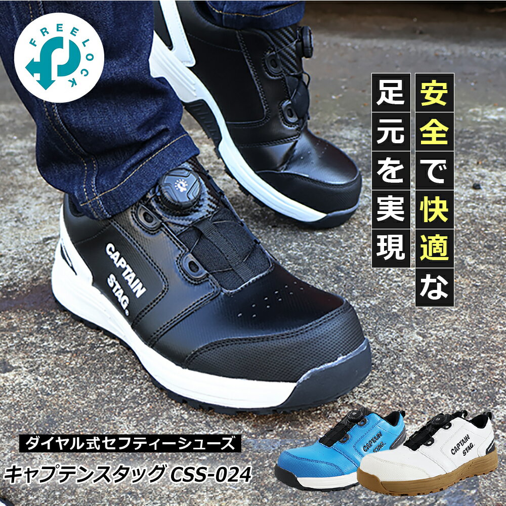 キャプテンスタッグCSS-024 商品詳細 ■FREELOCKダイヤルシステムで最適なフィット感を調節 ■鉄製先芯入りで安全 ■滑りにくい耐滑底 ■油で劣化しにくい耐油底 ■EVAカップインソール付きで疲れにくい ■リフレクター(反射材)装備 仕様 ■カラー:ブラック・ホワイト・ブルー ■サイズ:25.0、25.5、26.0、26.5、27.0、28.0(cm) ■重量:(片足)約440g(26....