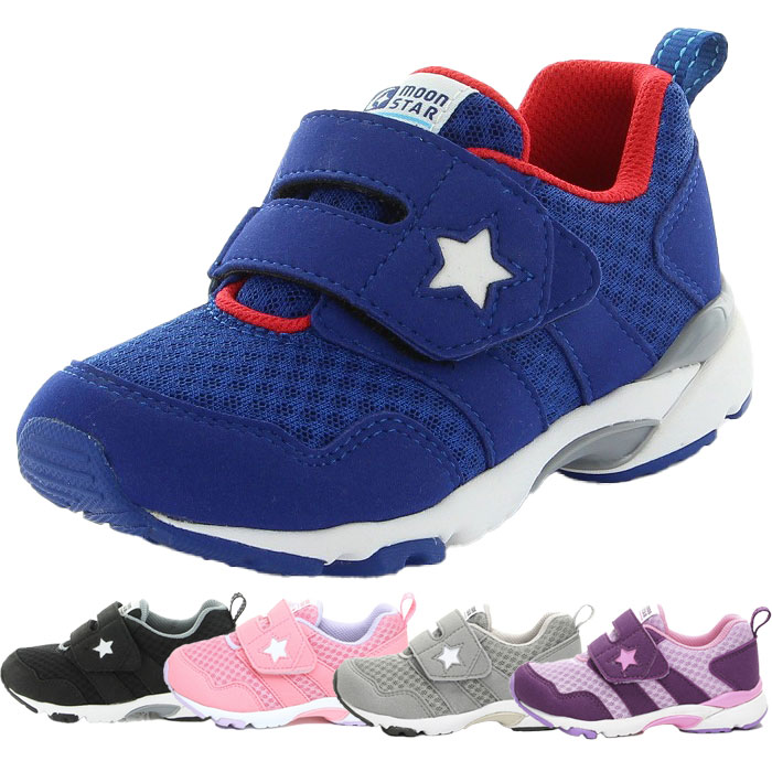 ■ムーンスター ジュニア キッズ キャロット CARROT MS C2259 スニーカー シューズ 運動靴 通園 通学 ゆったり ベルクロ マジックテープ 撥水 ブラック 黒 グレー ネイビー パープル 灰色 紫 送料無料 MoonStar